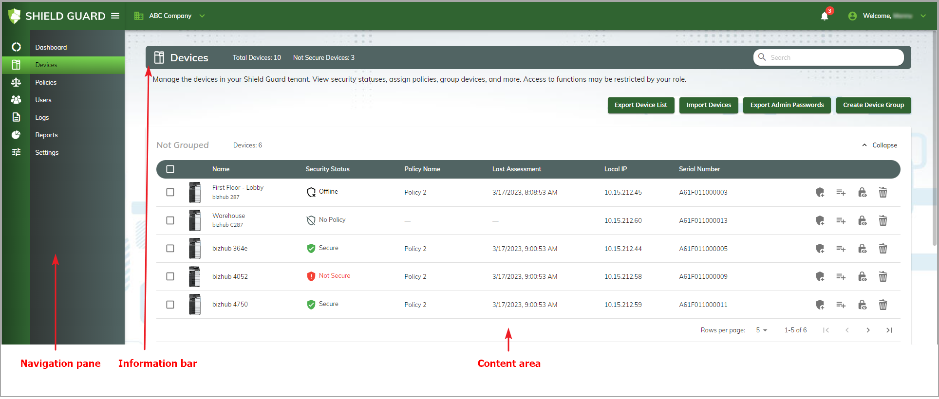 - Privacy - Accesses the Privacy Policy page on the Shield Guard Portal.