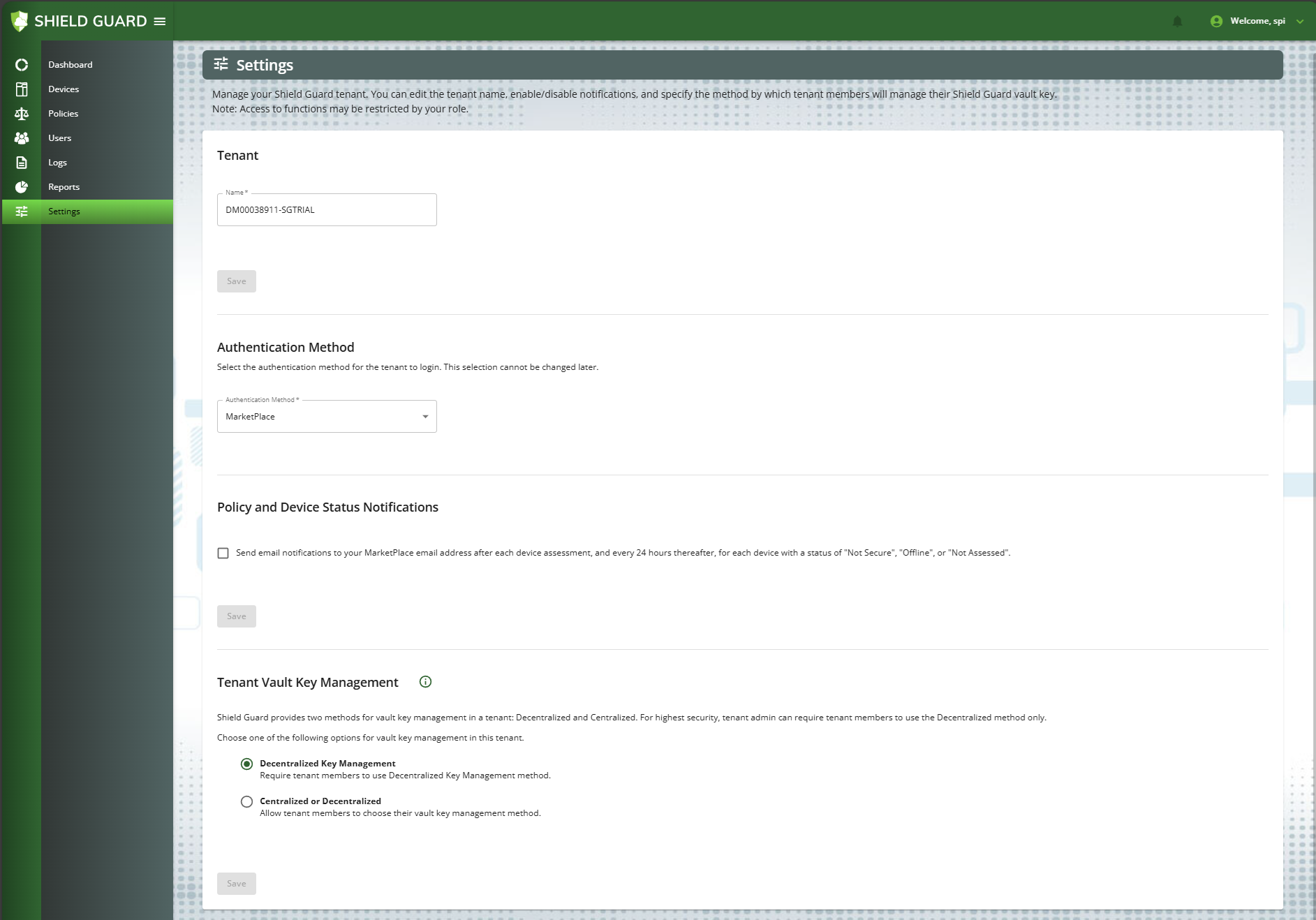 - During the initial setup, the Shield Guard user must be a Marketplace account holder with either the Tenant Owner or Tenant Admin role, and must have license management permissions. Additionally, the Marketplace account used to log into Shield Guard for this configuration must be associated with an email that already has an Entra ID account.